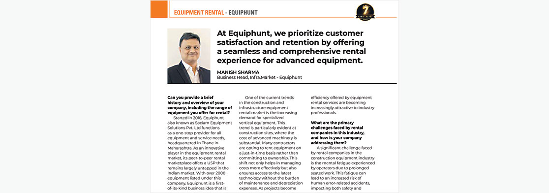 In this insightful article on Equipment Times, Manish Sharma, Senior Vice President at Equiphunt, explores the growing demand for specialized vertical equipment, the advantages of a peer-to-peer rental marketplace, and how the company addresses key industry challenges.